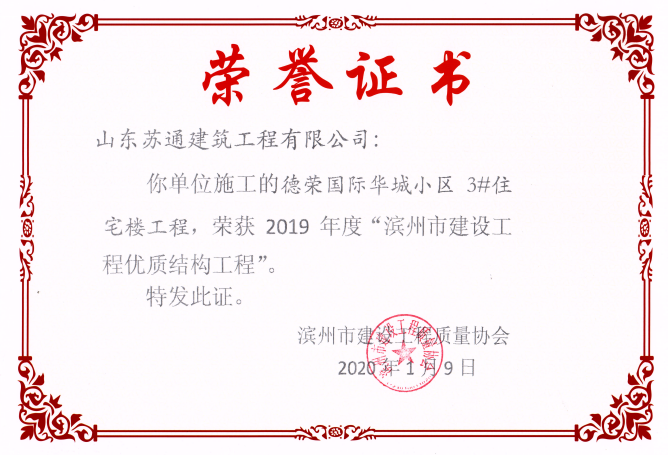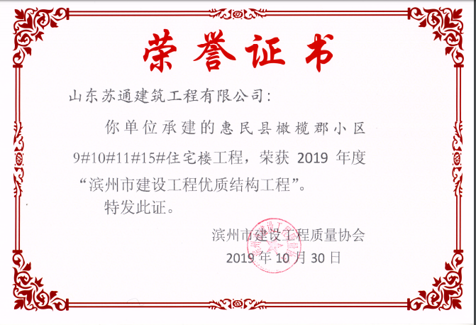 山東蘇通建筑工程有限公司,創(chuàng)建于2009年8月。目前擁有房屋建筑工程施工總承包壹級、市政公用工程施工總承包叁級、水利水電工程施工總承包叁級資質(zhì),同時還具有建筑裝修裝飾工程專業(yè)承包貳級、消防設(shè)施工程專業(yè)承包貳級、鋼結(jié)構(gòu)工程專業(yè)承包叁級、建筑機電安裝工程專業(yè)承包叁級等專業(yè)承包資質(zhì)。 公司總部坐落于山東省濱州市濱城區(qū)黃河十二路877號,現(xiàn)有辦公面積約2000平方米,機構(gòu)設(shè)黨支部工會辦公室、總經(jīng)理辦公室、綜合辦公室、工程管理部、經(jīng)營預(yù)算部、資產(chǎn)財務(wù)部、材料設(shè)備部、運行管理部、法律事務(wù)部等多個職能部門。公司管理體系已經(jīng)通過了GB/T 19001及GB/T 50430質(zhì)量管理體系、GB/T 24001環(huán)境管理體系(EMS)、GB/T 28001職業(yè)健康安全管理體系(OHSMS)等體系的認(rèn)證。 公司承建完工了濱州市建大教師之家、建大清怡苑、香格里拉水岸綠城住宅小區(qū)、雙泰建大城、曲阜崇德公館住宅小區(qū)、北海新區(qū)御景藍灣住宅小區(qū)、沾化德榮國際華城住宅小區(qū)、惠民橄欖郡住宅小區(qū)等工程項目,目前在建工程項目有:濱州市頤高國際電子商務(wù)產(chǎn)業(yè)園住宅小區(qū)項目、濱州市東盛國際項目、高新區(qū)建大中央華府住宅小區(qū)項目、濱州市融匯新里程住宅小區(qū)項目、濱州市建大秦皇壹號住宅小區(qū)項目、濱州市森林花...